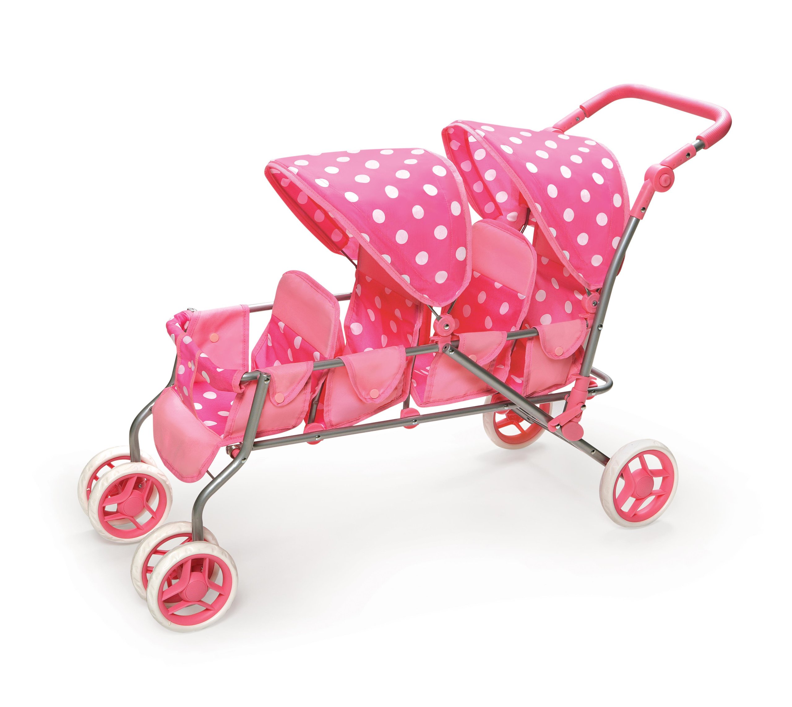 Badger Basket Triple Doll Stroller Pink Polka Dots Fits American Girl Dolls Walmart Com Walmart Com